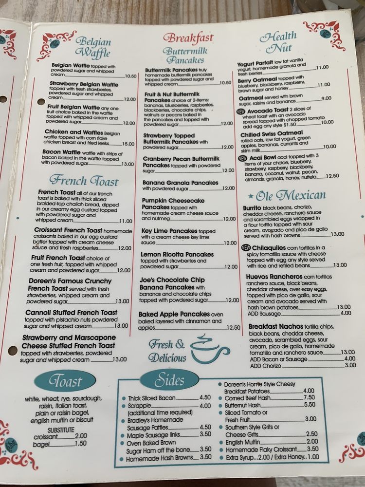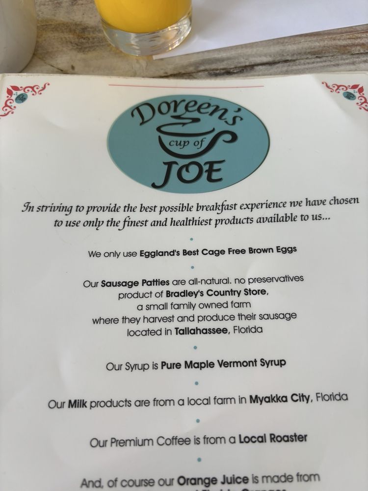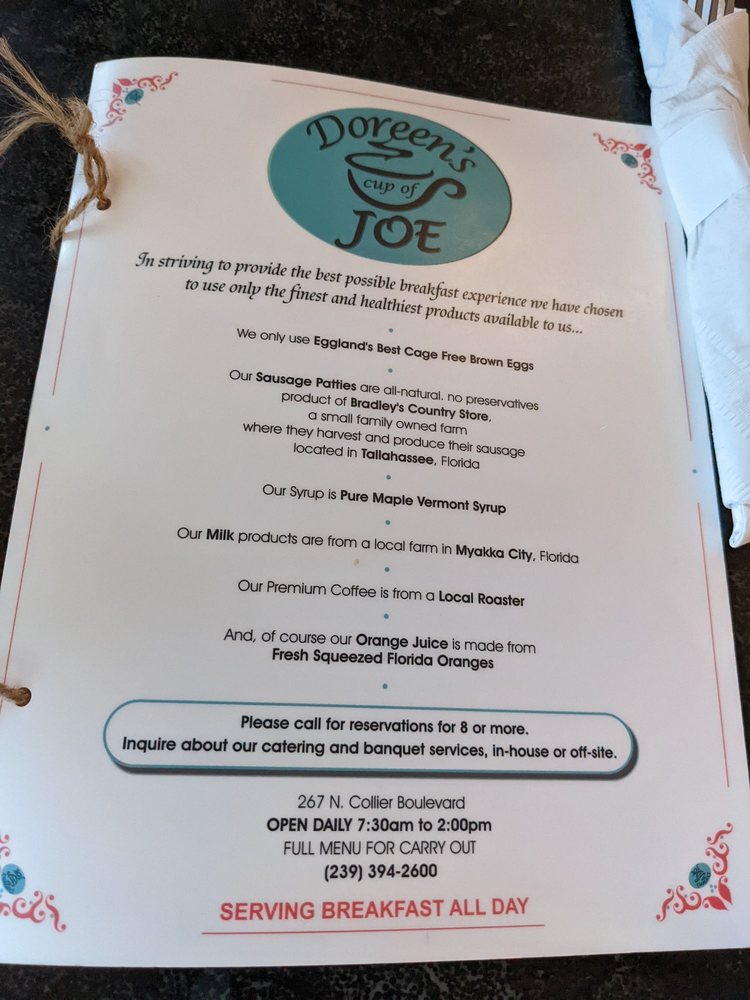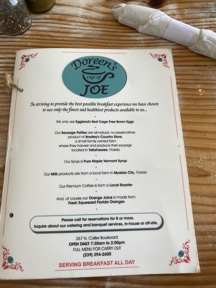 Welcome to Doreen's Cup of Joe, your new favorite spot for Breakfast and Brunch in Marco Island. This casual yet classy eatery perfectly blends comfort with culinary creativity. From the moment you walk in, the inviting atmosphere, complemented by moderate noise levels, sets the stage for a delightful dining experience.